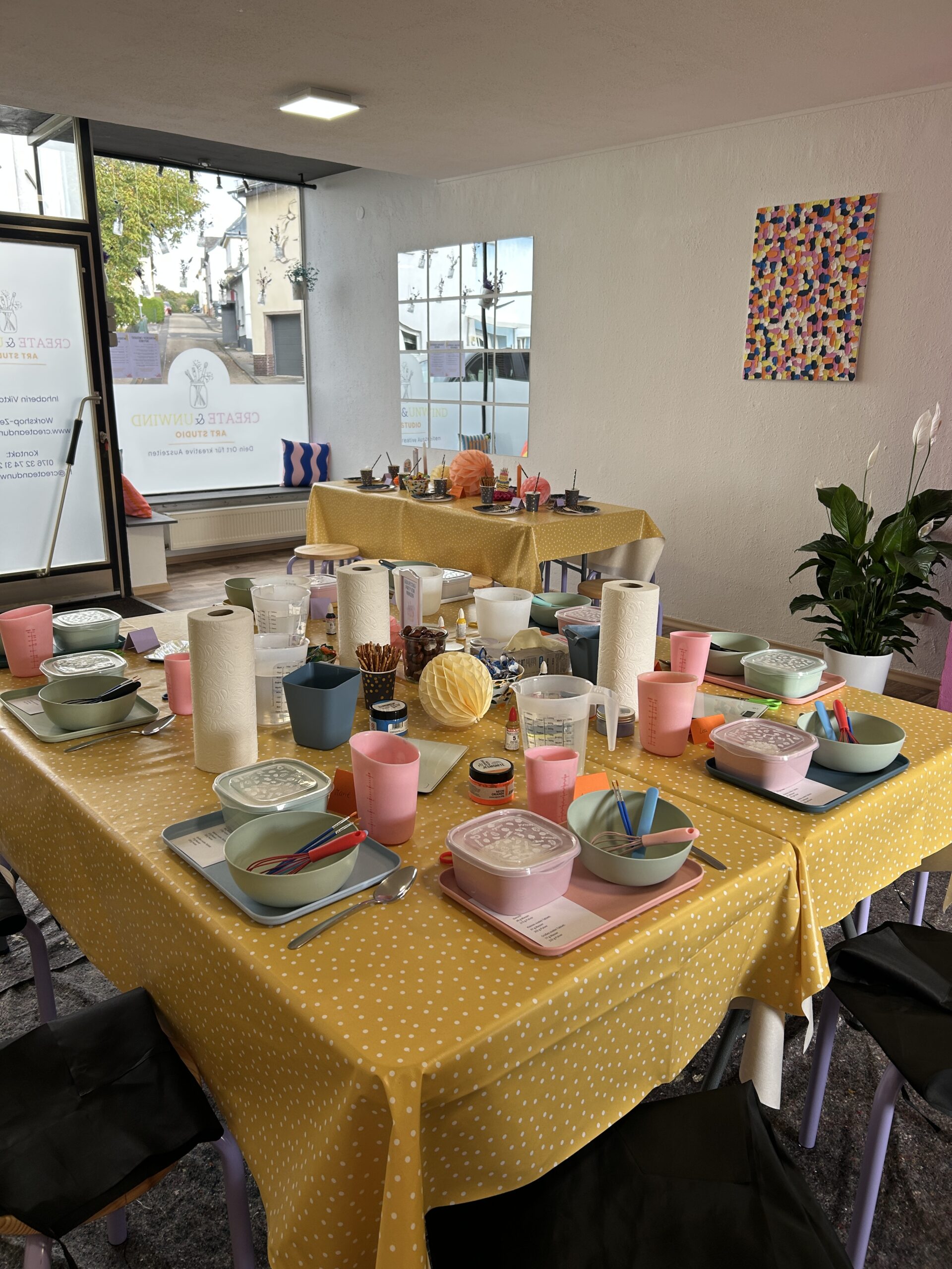 - geschmücktes Studio (Geburtstagstisch und Basteltisch getrennt)