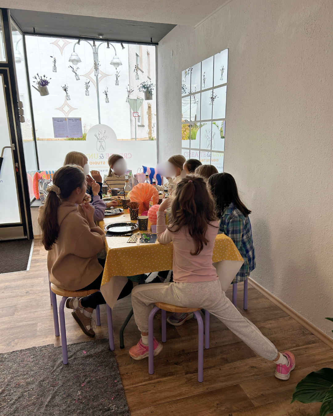 Das Studio wird liebevoll für das Geburtstagskind dekoriert, sodass schon beim Hereinkommen echte Feierlaune aufkommt. Mit kindgerechter Anleitung, viel Raum für Fantasie und einer entspannten Atmosphäre können die Kinder ihrer Kreativität freien Lauf lassen. Vorkenntnisse sind nicht nötig – hier zählt vor allem der Spaß am Ausprobieren.